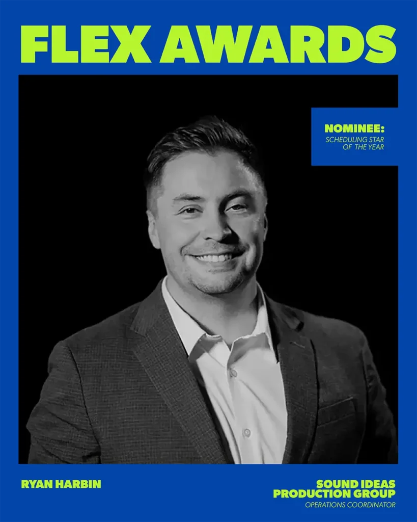 Ryan Harbin is nominated for Scheduling Star as part of the Flex Awards. The Flex Awards celebrate the professionals behind the scenes who keep live events moving and make complex productions feel seamless. To learn more about the program and this year’s finalists, visit FlexRentalSolutions.com/Flex-Awards. FlexRentalSolutions.com/Flex-Awards.
